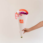 Empaque: El ramo va envuelto en nuestro papel La Jagua de temporada y empacado en una cono único cuyo interior te sorprenderá.