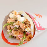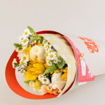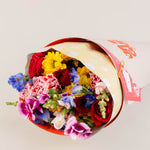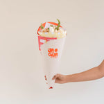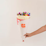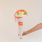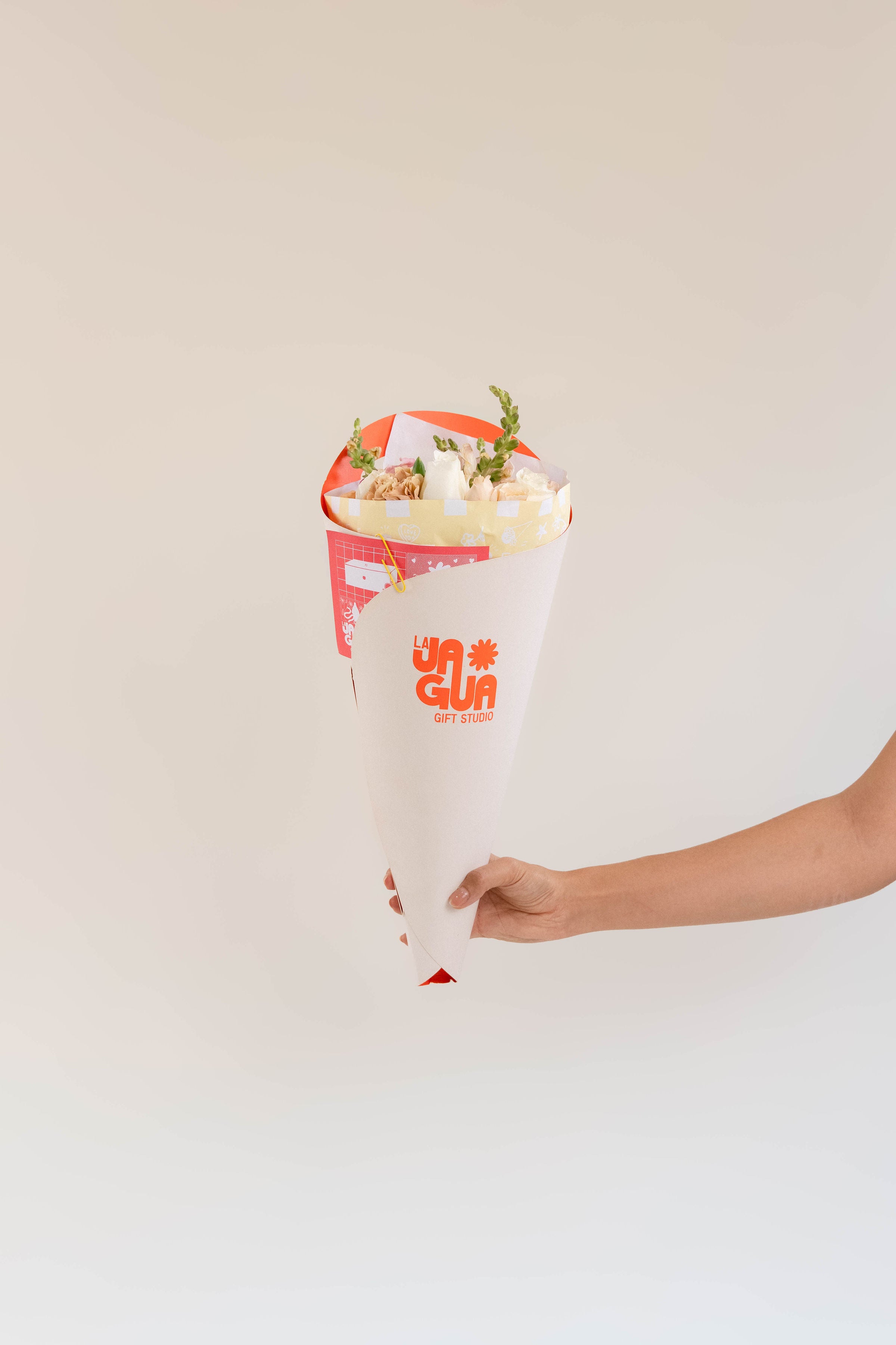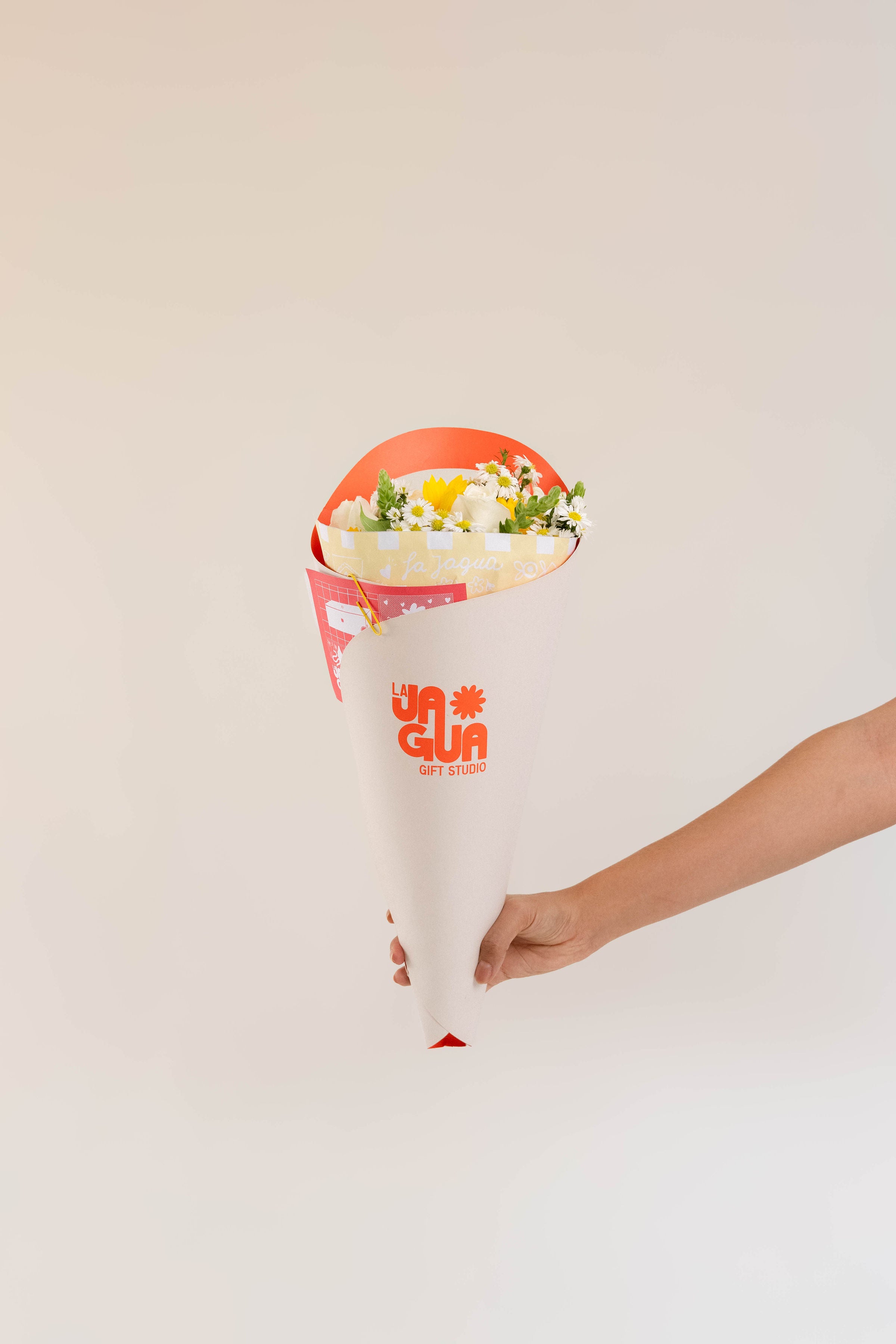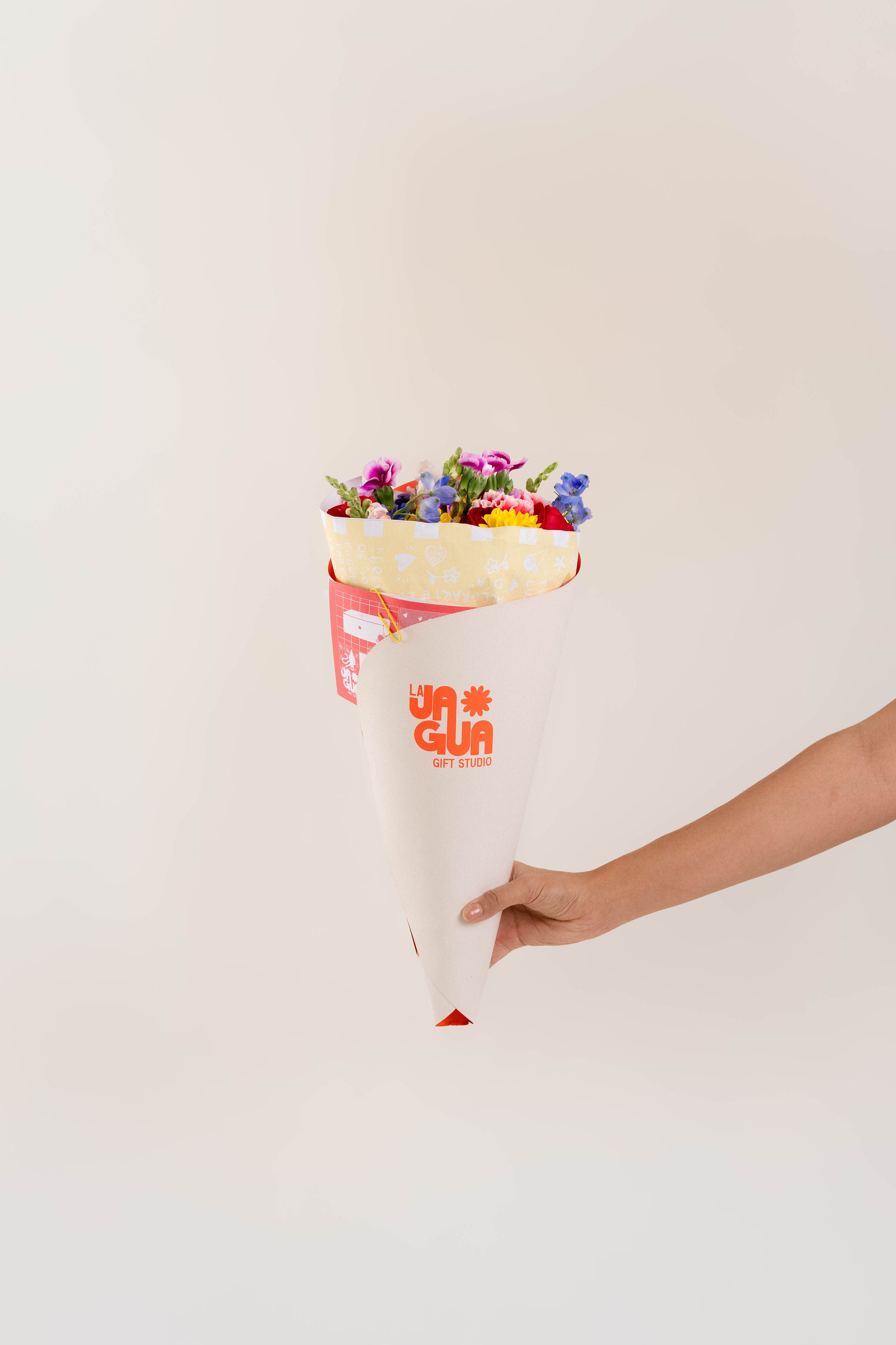 Empaque: El ramo va envuelto en nuestro papel La Jagua de temporada y empacado en una cono único cuyo interior te sorprenderá.
