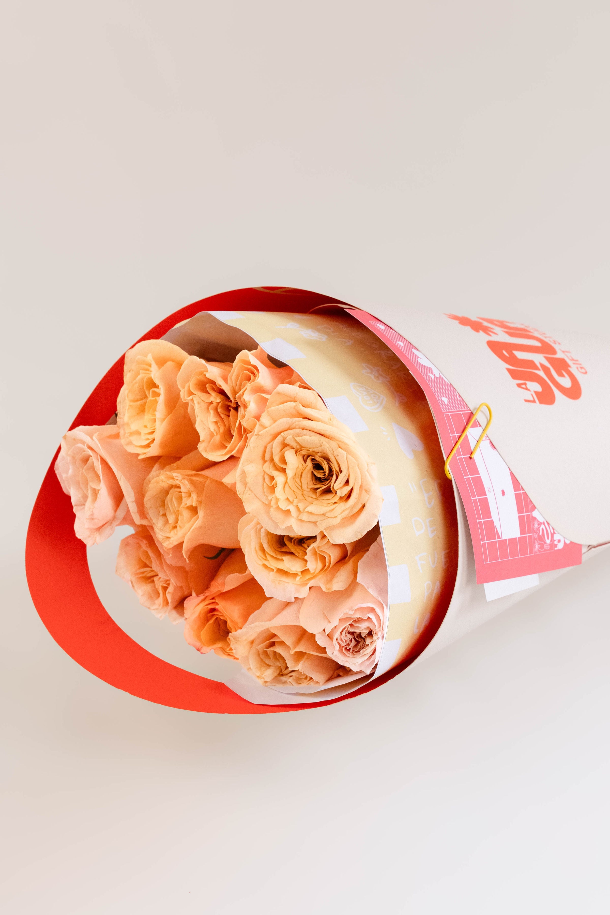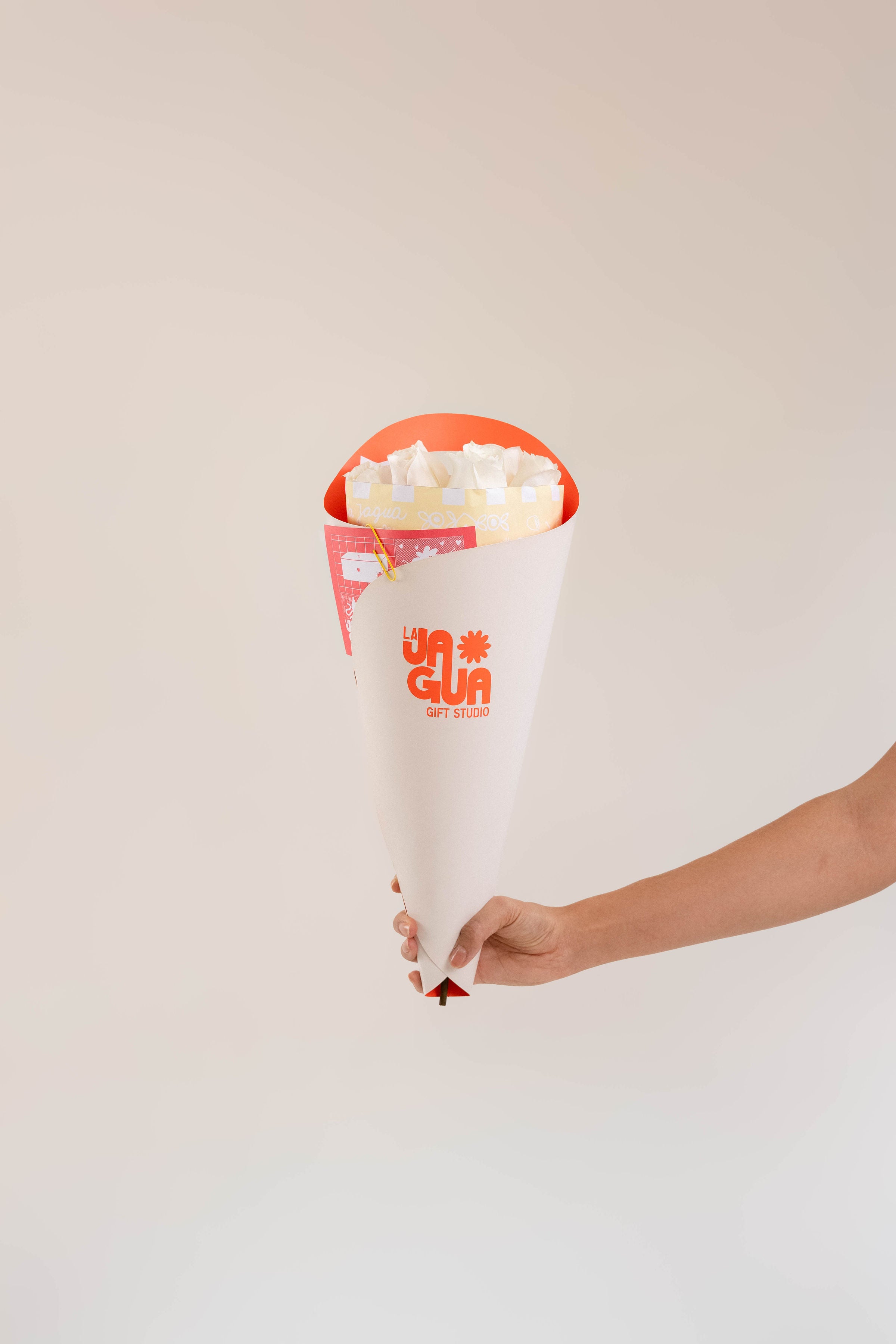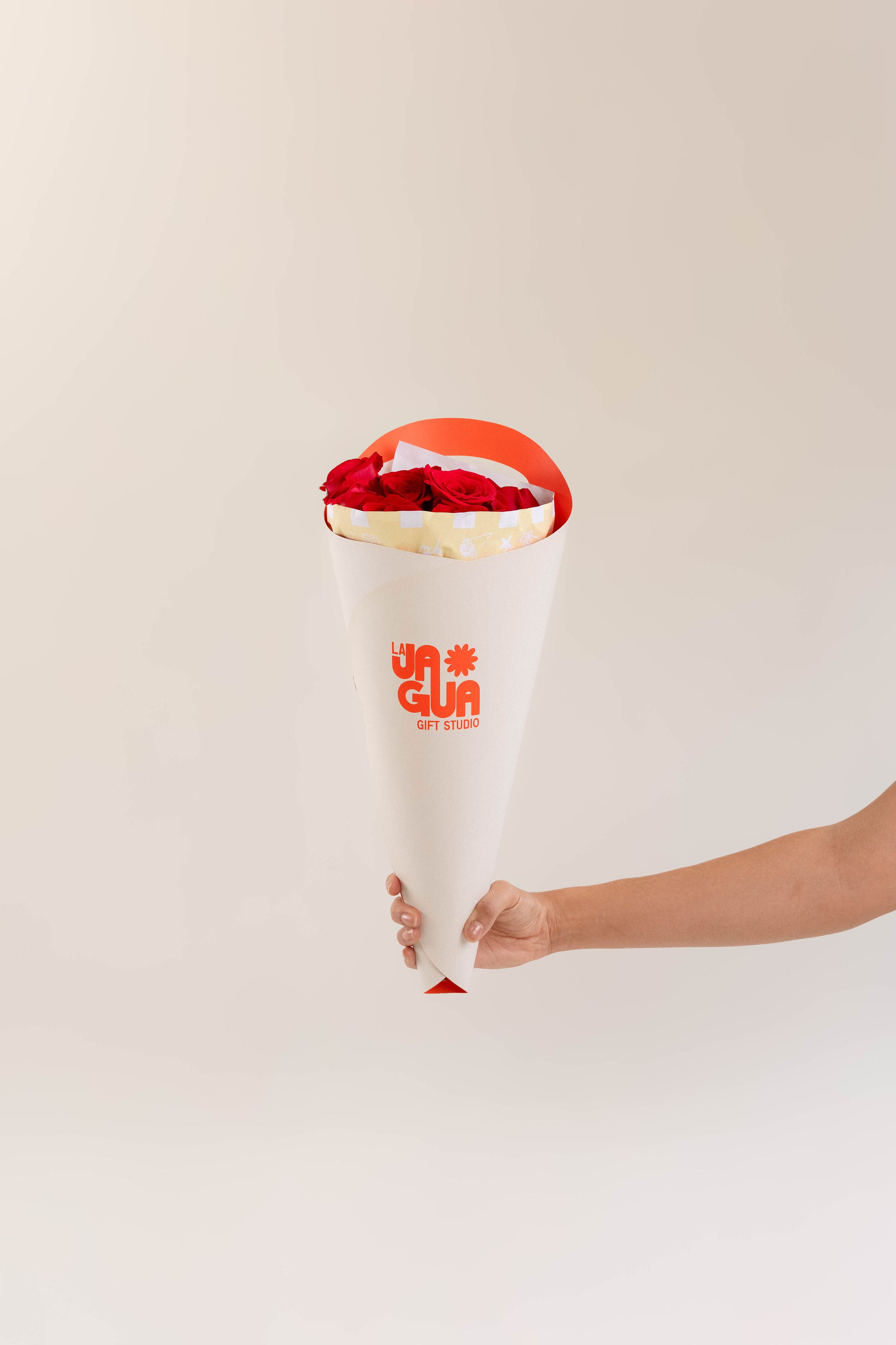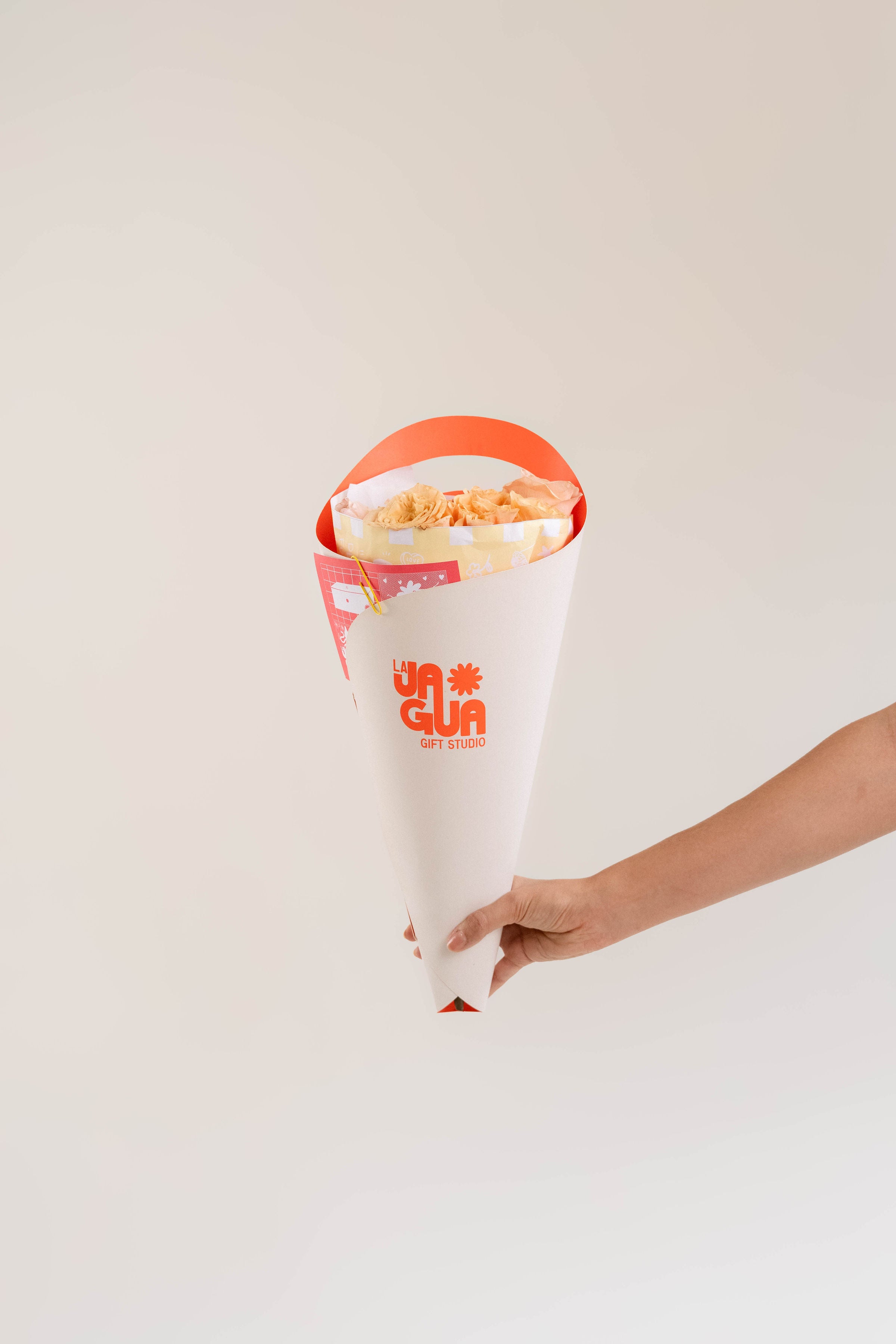 Empaque: El ramo va envuelto en nuestro papel La Jagua de temporada y empacado en una cono único cuyo interior te sorprenderá.